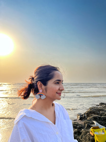 Multi Colored Rainbow and Clouds Handmade Beaded Earrings