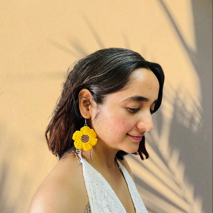 Yellow Sunflower Shape Handmade Crochet Earrings